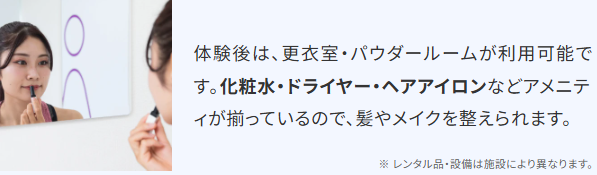 - 手ぶらでOK!荷物なしで仕事帰りに直行できる!