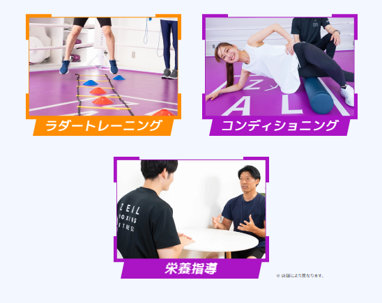ZEALのトレーニングは、単なるミット打ちに留まりません。公式サイトによると、ボクシング指導に加え、「体幹トレーニング」「ラダートレーニング」「コンディショニング」「栄養指導」まで提供されます。体の内側から総合的に体質改善を目指せます。