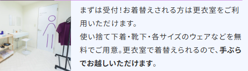 - 手ぶらでOK!荷物なしで仕事帰りに直行できる!
