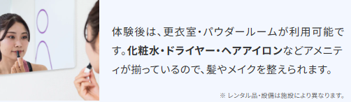 - 「化粧品・ヘアアイロン完備で、その後の予定も完璧」