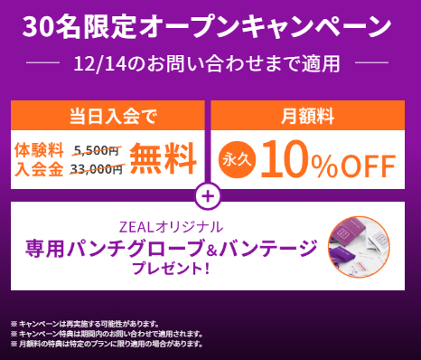 🎁 【見逃し厳禁!】ZEAL BOXING FITNESS 広尾店の超お得な入会キャンペーン情報