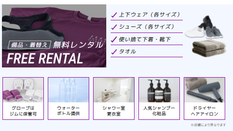 - 「仕事終わりに手ぶらで直行(ウェア・靴・タオル・水筒まで無料!)」