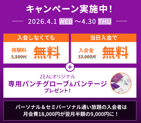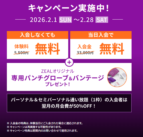 🎁 【見逃し厳禁!】ZEAL BOXING FITNESS 札幌手稲店の超お得な入会キャンペーン情報