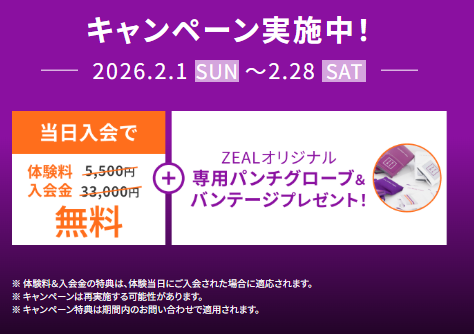 🎁 ZEAL BOXING FITNESS 浅草橋店の入会キャンペーン情報