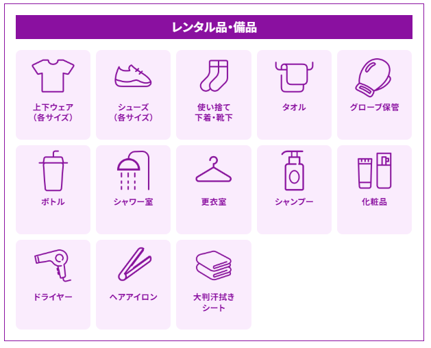これだけの設備が整っているため、手ぶらで行って、最新の機器で楽しく汗を流すことができます。
