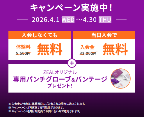 🎁 ZEAL BOXING FITNESS 津三重大前店の入会キャンペーン情報
