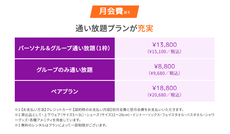 とにかく月額を抑えたい、運動ついでにセルフエステや脱毛も試したい、という人向け。こちらも指導はないため、運動効果は自己責任となります。