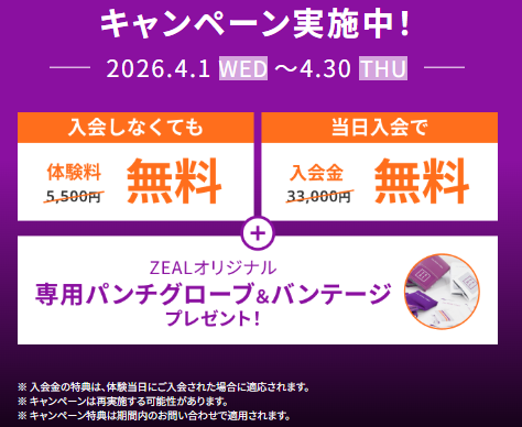 🎁 ZEAL BOXING STUDIO 四天王寺店の入会キャンペーン情報